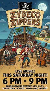 Get ready to zip up your dancing shoes! The Zydeco Zippers are bringing the party to Island Brewing this Saturday night. This isn’t just a Zydeco show—expect an electric mix of your favorite blues, deep funk, classic rock, and high-energy jam music. With a setlist that spans from Mardi Gras anthems to everything in between, they guarantee a foot-stomping good time. Grab a fresh pint and join us on the patio for the best grooves in Carpinteria!