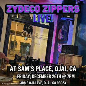 Get ready to transform Sam’s Place into the Bayou. The Zydeco Zippers are bringing their distinctive ‘sonic gumbo’ to Ojai for an unforgettable evening. This isn’t merely a concert; it’s a comprehensive musical journey. From NOLA-style Zydeco and gritty Blues to Funk and Rock, the Zippers perform it all – and everything in between. Whether you wish to groove, rock out, or simply soak up the Mardi Gras spirit, this is the place to be. Bring your dancing shoes.